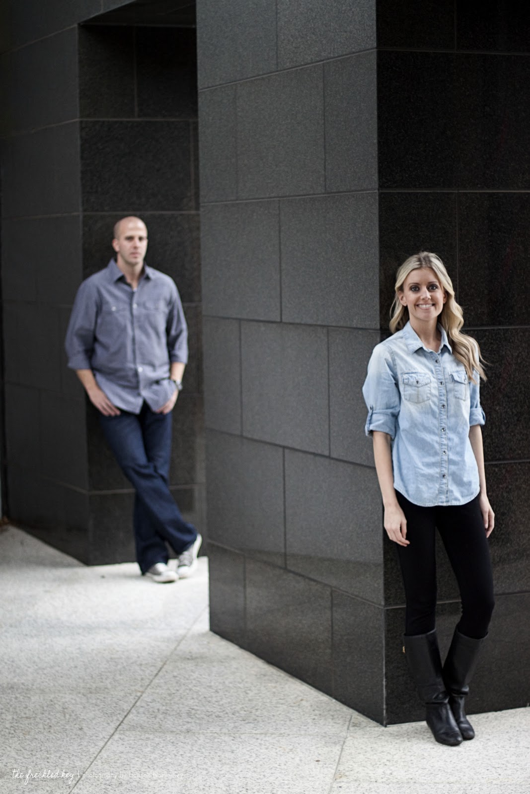 Photographing them was a BREEZE! Their familiarity with each other, sense of humor, and willingness to have fun made for a perfect photo shoot 🙂 Not to mention, the lighting was impeccable! It was a cloudy, but bright day with no harsh sun. The threat of rain rolled in during the last 30 minutes of the shoot, so we high-tailed it to our last destination and beat out the drizzle! I had such a blast photographing these two love birds 🙂