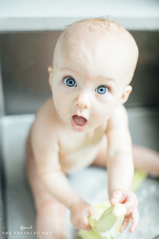 This girl loves playing in water. She could splash for minutes on end and be endlessly amused by her ability to make water fly. I’m convinced that is why she is such a messy eater – because she knows a bath will immediately follow.