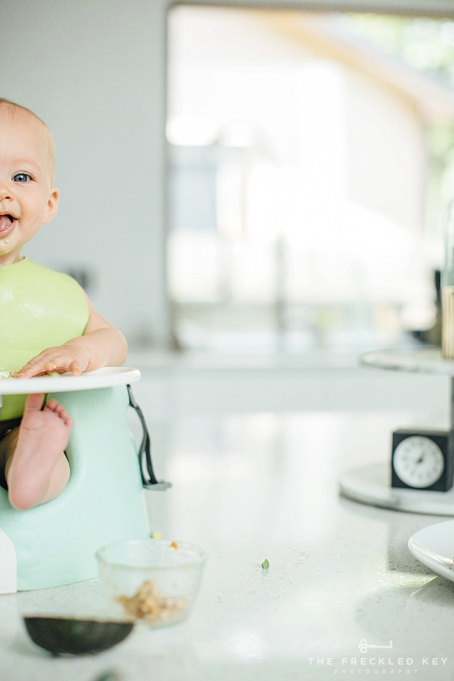 Our little Maxine Gean is half a year old. Six months. I’m fascinated by how much infants change in the first year. It wasn’t but 5 months ago that this little girl didn’t even know how to smile and now that’s her favorite expression (well, other than the eyebrow face – see avocado eating photo below).